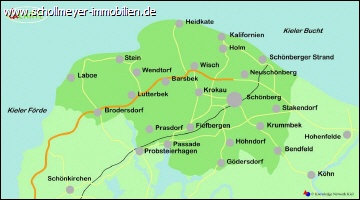 Die "Probsteier" waren immer freie Bauern mit Erbrecht. Schönberg liegt ca. 20 km nordöstlich von Kiel entfernt im Kreis Plön. Der ländliche Zentralort, das Wirtschaftszentrum hat ca. 6.300 Einwohner.Die ausgezeichnete Verkehrsanbindung zur Landeshauptstadt Kiel, mit der Bundesautobahn A 7, Einkaufsmöglichkeiten, Schulen, 6 Kindergärten, 16 Bolz- und Spielplätze sowie 16 Ärtze und ein riesiges Rad- und Wanderwegnetz, machen Schönberg zu einer interessantenWohngemeinde.